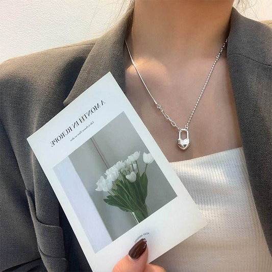 Women's Double-Layer Chain Heart-Shape Lock Necklace S925 Sterling Silver